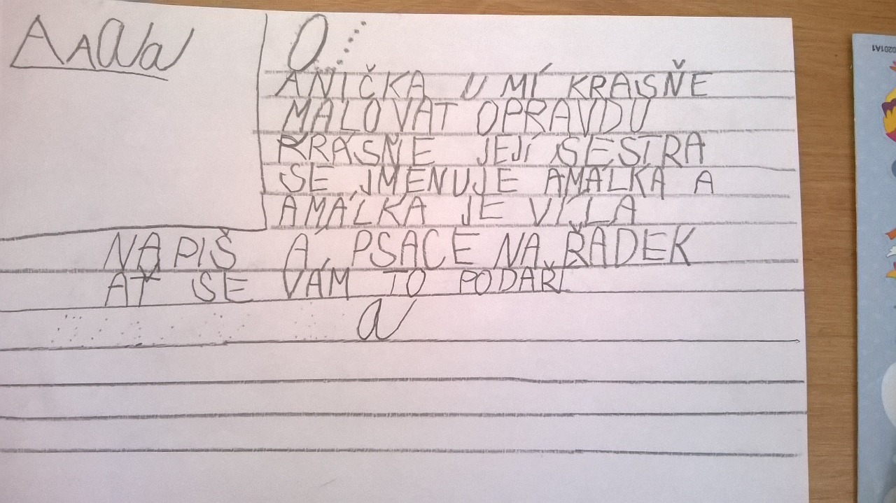 Psaní - opis, přepis, diktáty a opakujeme písmena.